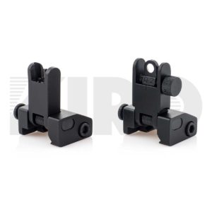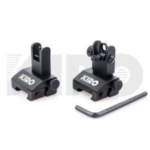 Designed & built for rigid and rough conditions, the Kiro Aluminum Front & Rear Flip-Up Backup Sights are a must for every assault rifle/conversion kit. Their extremely low profile allows for the use of low-mounted optics.